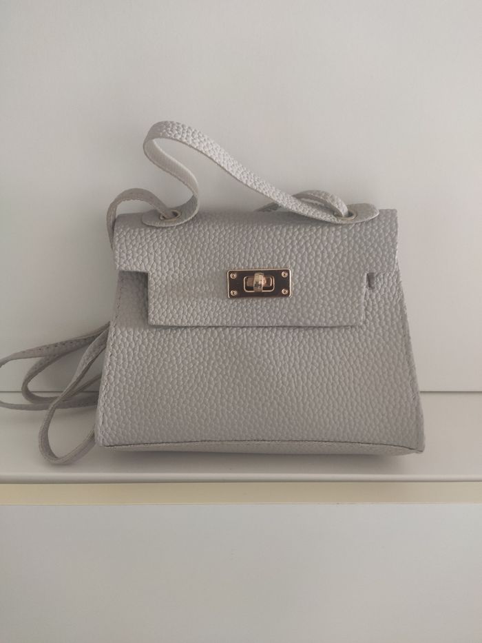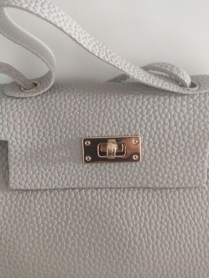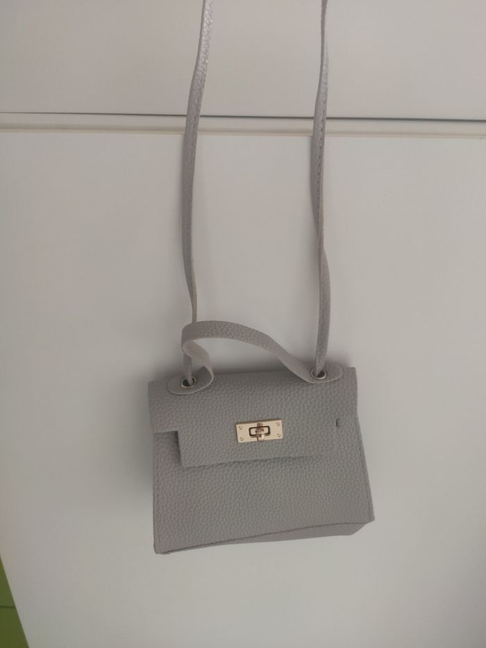 Couleur gris clair avec fermeture dorée, jamais porté. Dimension 17,5 cm x 12 cm x 6 cm à la base. La lanière est très grande mais il est possible de la porter plus petite en faisant un nœud à l'intérieur du sac. Au maximum elle fait 52 cm de hauteur. Poignée pour le porter à la main. Neuf ! #vulariSacs