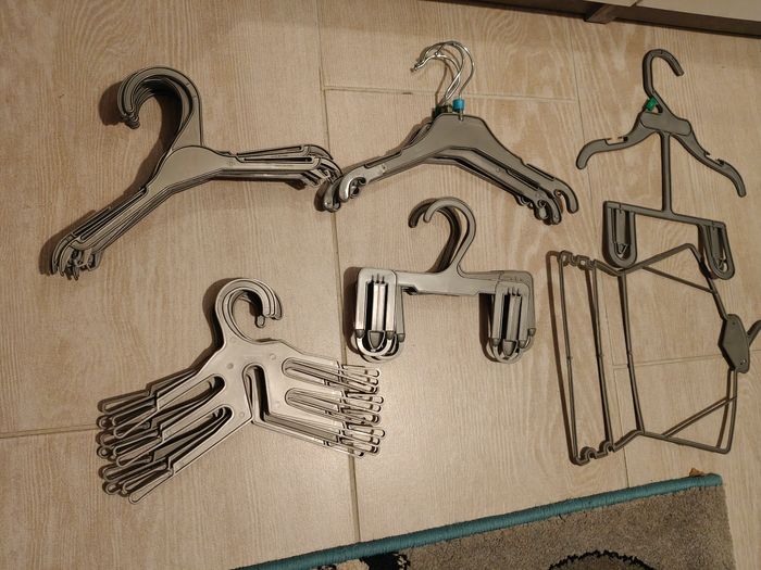 3 cintres à pantalons 2 cintres à ensemble (bon état, ils ne sont plus entièrement plat) 4 cintres triples pour veste, chemise, tee-shirt, body 9 cintres pour veste, chemise, tee-shirt, body 3 cintres avec tige métallique pour veste, chemise, tee-shirt, body #amelie7028 #amelie7028bebe