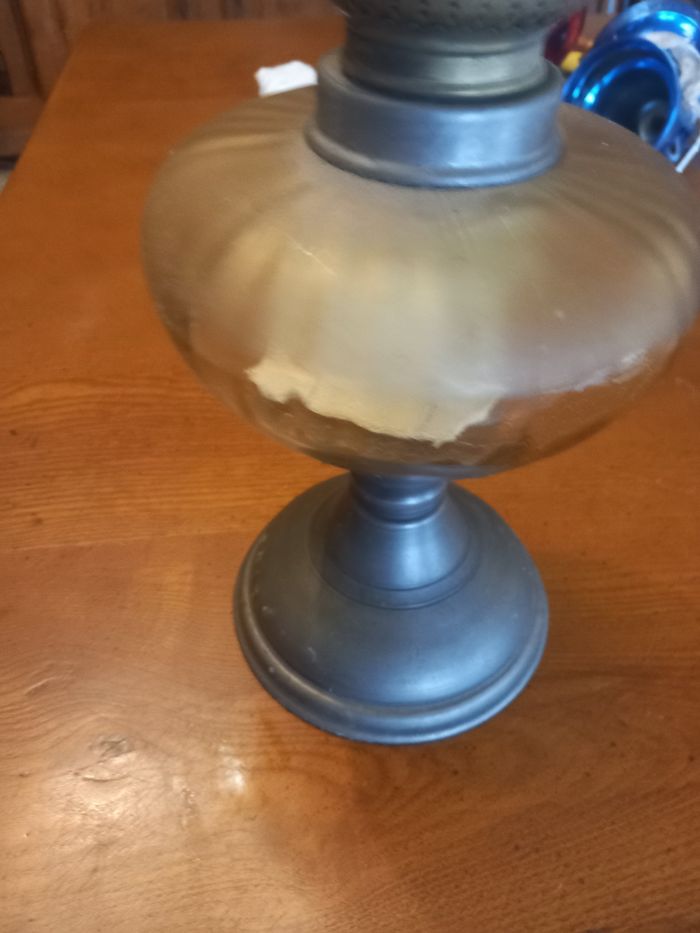 Lampe à pétrole vintage hauteur 50 cm. Pied en etain
