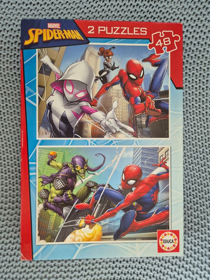 2 puzzles 48 pièces Spiderman. Complet et en bon état. Juste quelques marques d'usure / frottement sur la boîte. #mimidacenfant #mimidacjouets #mimidacpuzzle