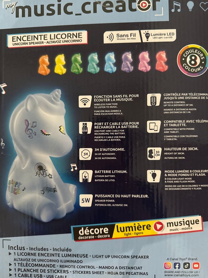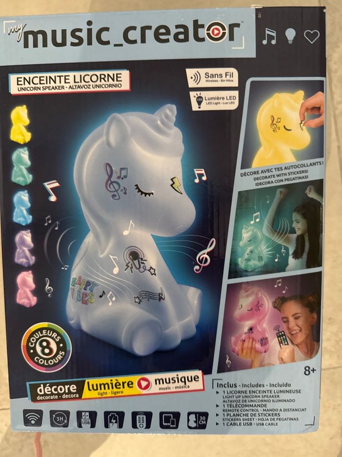 Enceinte licorne my music creator , sans fil , lumières led . Neuf jamais ouvert