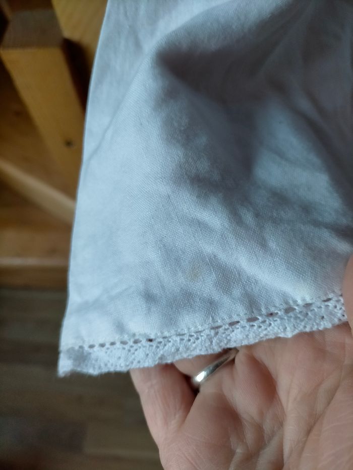 TBE Très jolie robe sans manche en cotonnade rose très pâle. Plis, boutons et petit nœud, galon de dentelle à la base et zip au dos