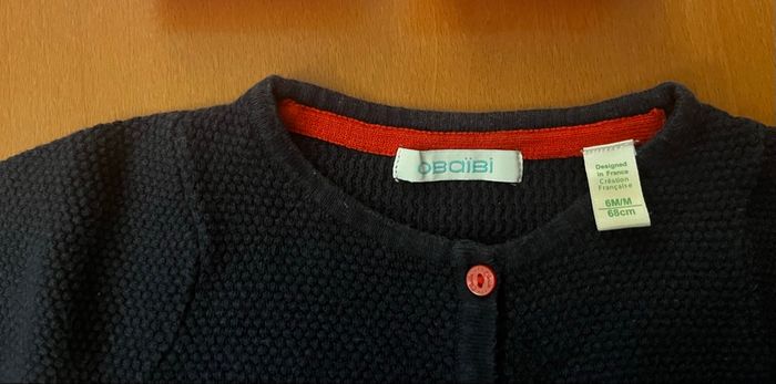 Bonjour, A vendre gilet taille 6 mois de la marque Obaïbi : 1€50 Il a été porté voir les photos. Mis sur d’autres groupes de vente Regardez dans mon dressing j’ai des vêtements garçon du 3 mois à 10 ans Et des vêtements fille de la naissance à 4 ans