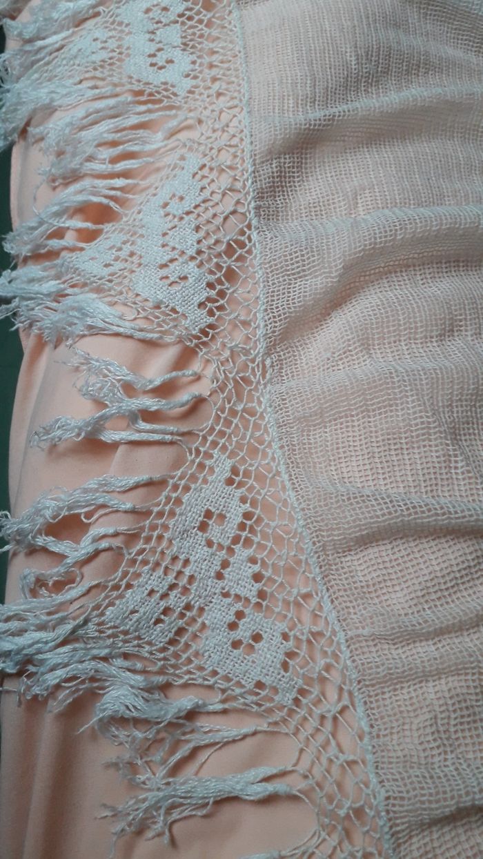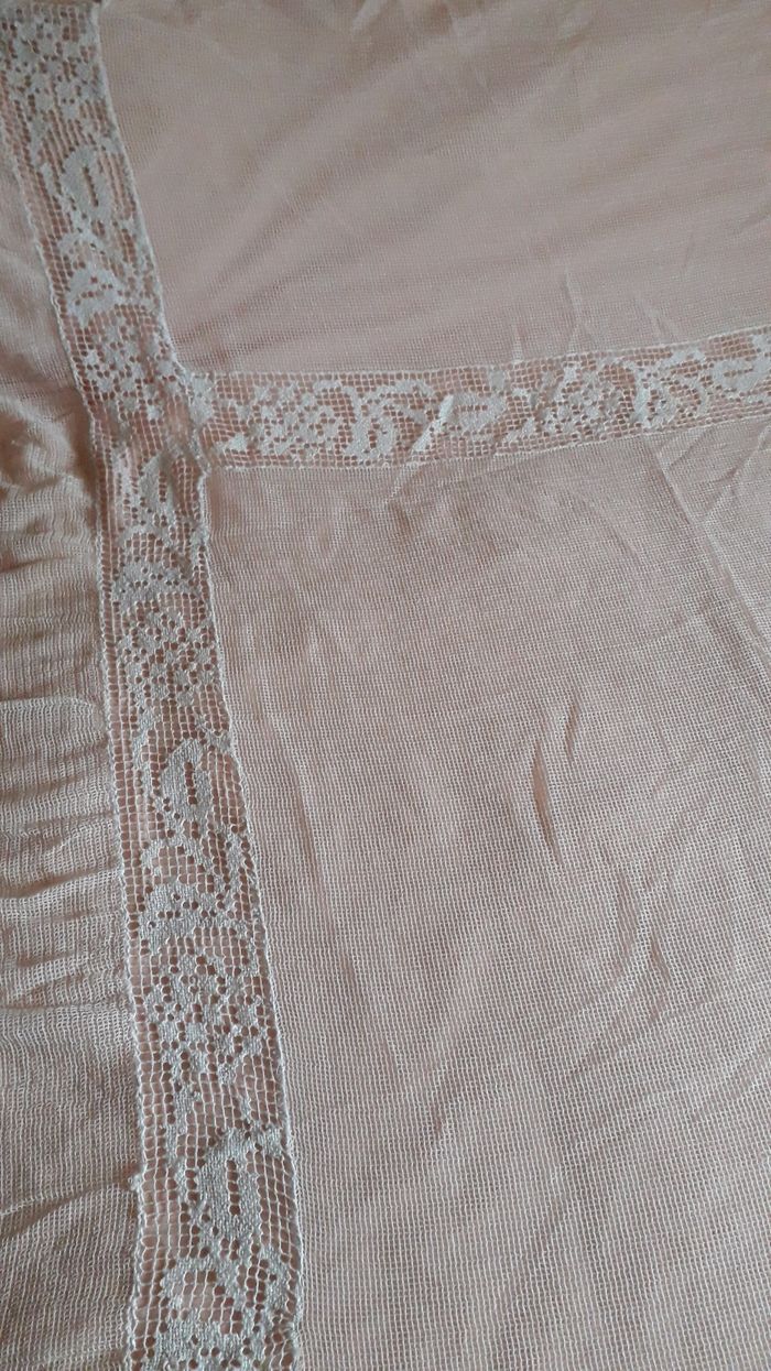 Dessus de lit vintage bon état général pas de trous Quelques petites traces d'usure fils tirés voir photos Longueur 1 m 75 largeur 1 m 90 + hauteur des franges et dentelles 20 cm