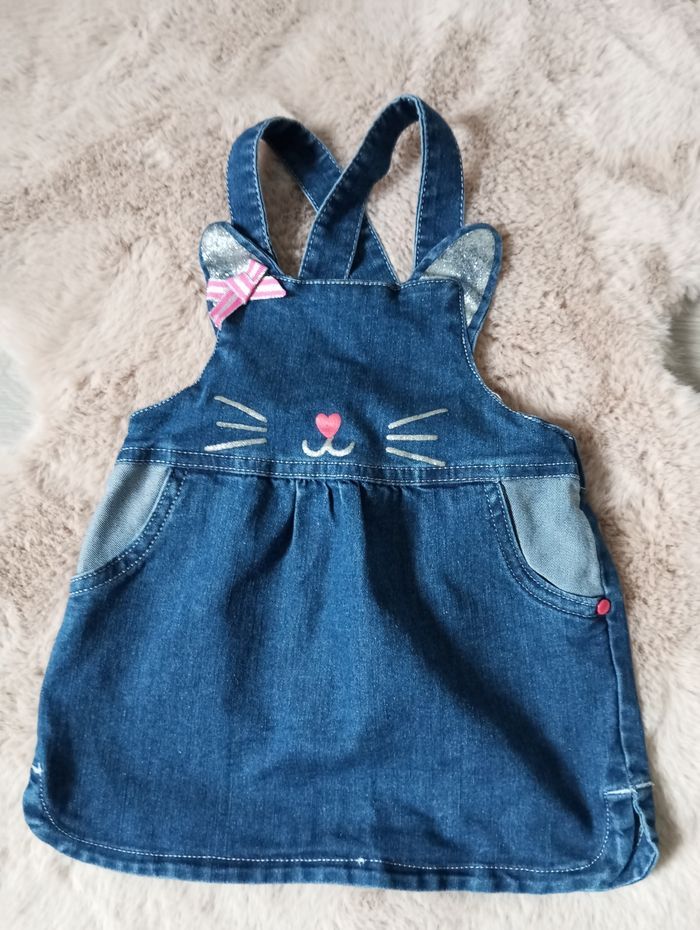 Robe en jeans motif chat, taille 12 mois, marque Tissaia. Elle est neuve, seulement lavée.