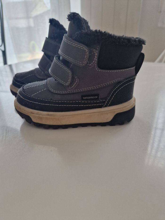 Bottillons fourrés pour garçon Pointure 24 Achetés à H&M Waterproof Se ferment avec 2 scratchs Idéal pour la neige et l'hiver Très peu portés Coloris gris, intérieur en fausse fourrure noire