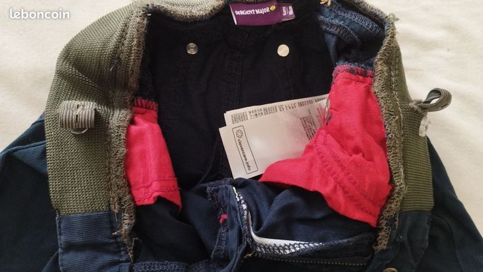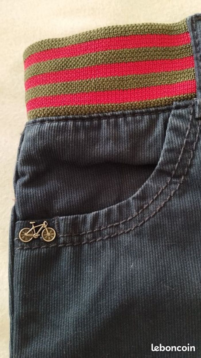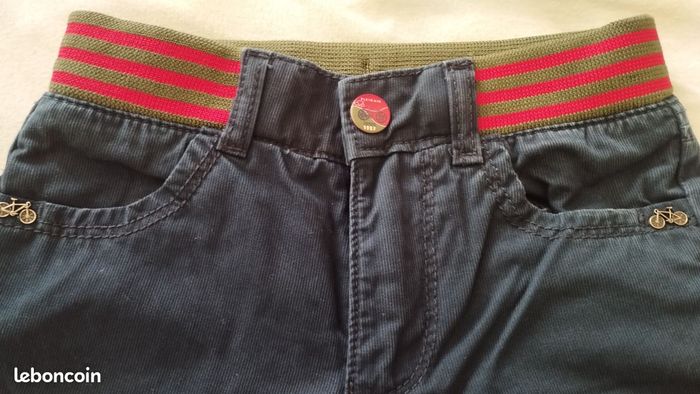 Pantalon garçon de chez Sergent Major. Très original, bonne qualité. Se ferme par zip et bouton pressage. Taille élastique et ajustable par élastique boutonné à l'intérieur. 2 poches avant, 2 derrière. Pour enfant de 6ans.