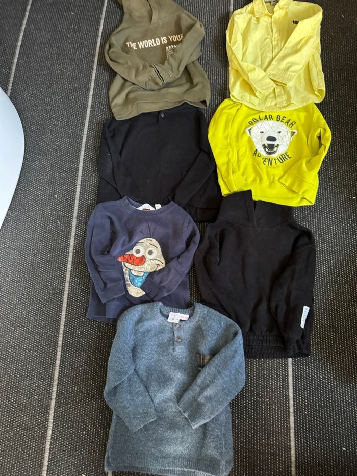 Lot pull garçon Pull bleu Zara 4-5 ans Pull à capuche Zara 6 ans mais conviens à du 5 ans Pull Olaf 2-4 ans H&M Pull noir à capuche 4-5 ans Zara Pull Ours 110-116 cm Pull à capuche vert kaki primark 4-5 ans Chemise Tape à l’oeil 5 ans