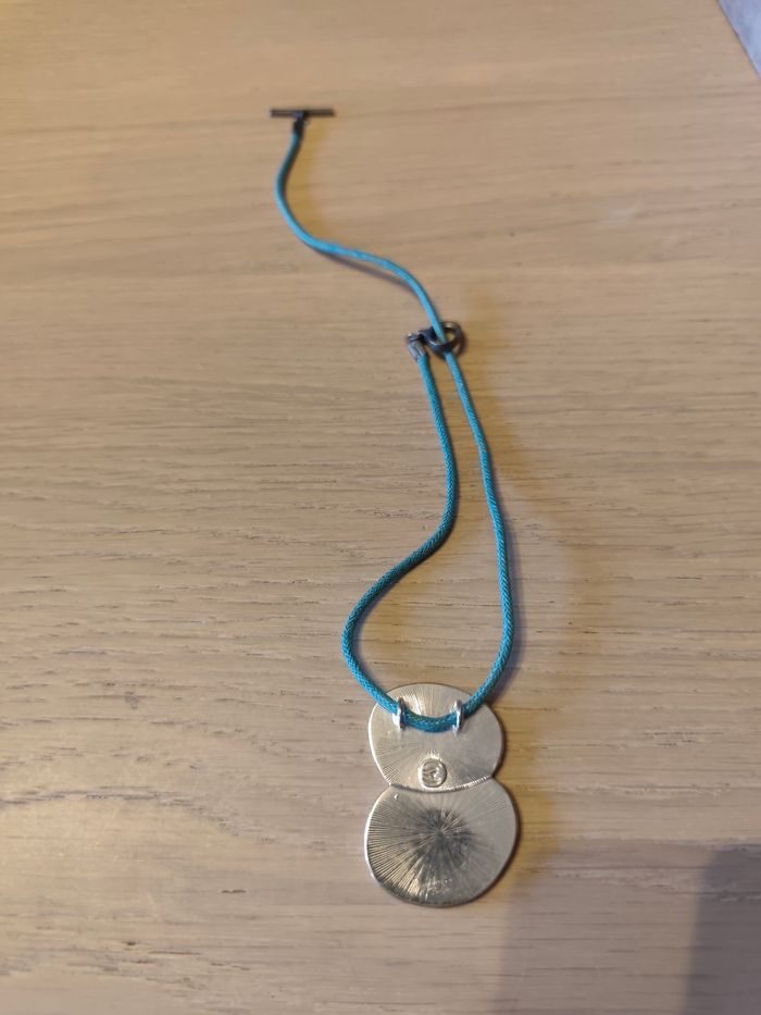 Collier Pendentif en résine et métal, avec un cordon turquoise