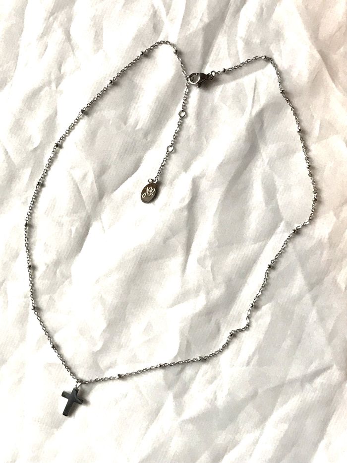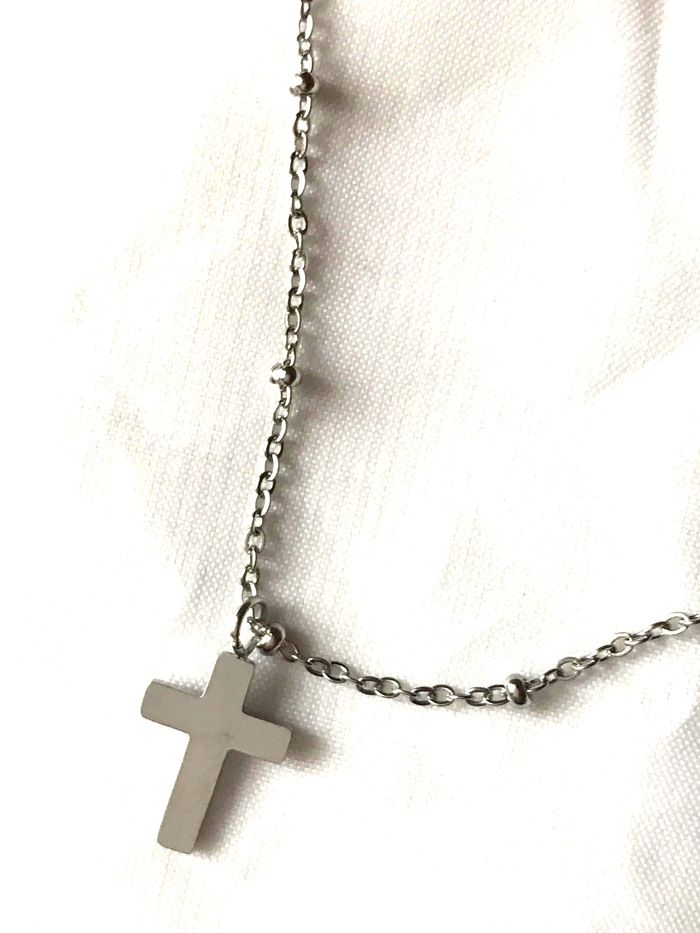 Collier Pendentif Petite Croix Mini Perles Chaîne Religion Bijou Argenté Fantaisie Hommes Femmes - photo numéro 3