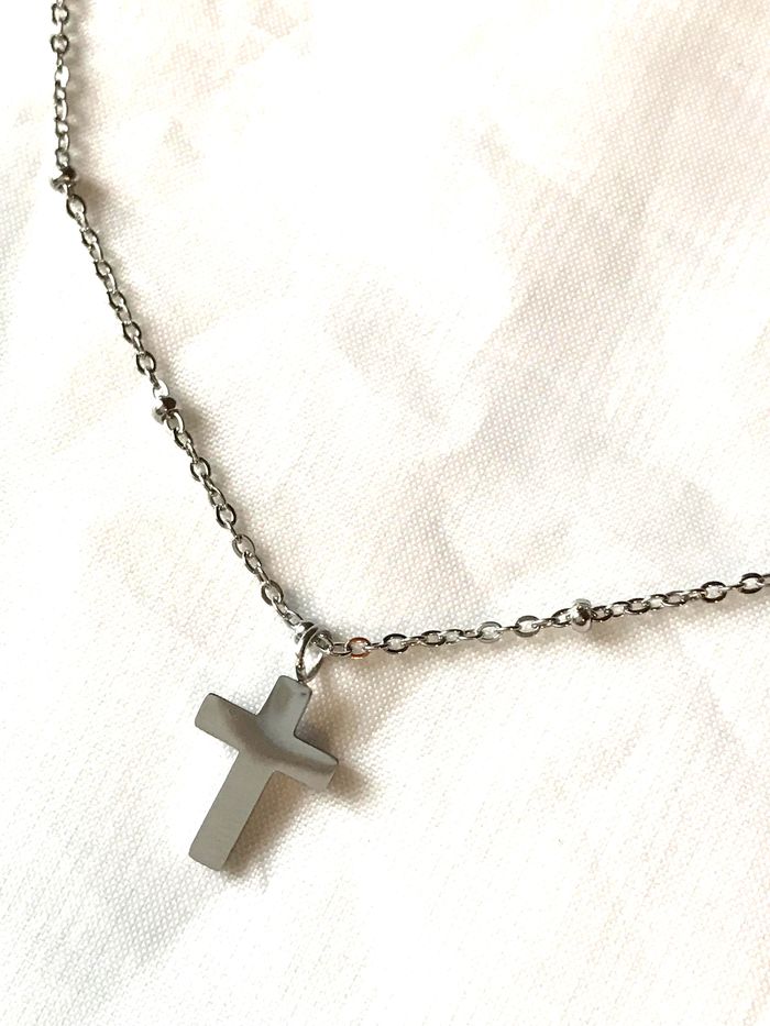 Collier Pendentif Petite Croix Mini Perles Chaîne Religion Bijou Argenté Fantaisie Hommes Femmes - photo numéro 4