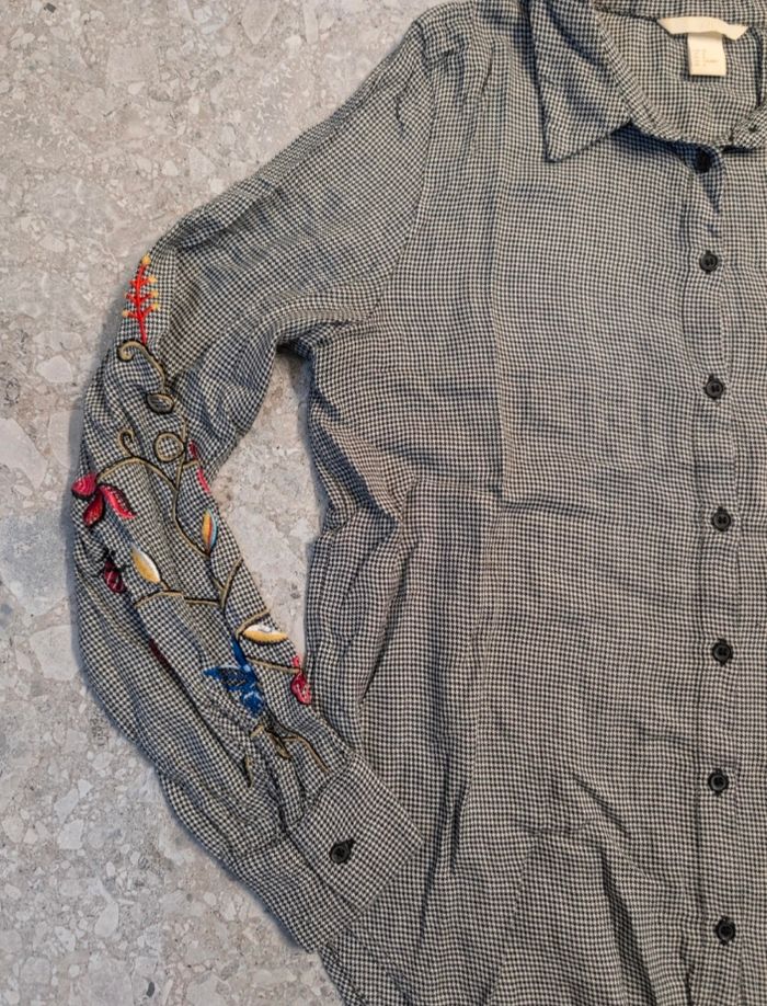 Belle chemise à carreaux de H&M avec broderie florale sur les manches. Taille 38. Parfait pour le printemps ou l'été !