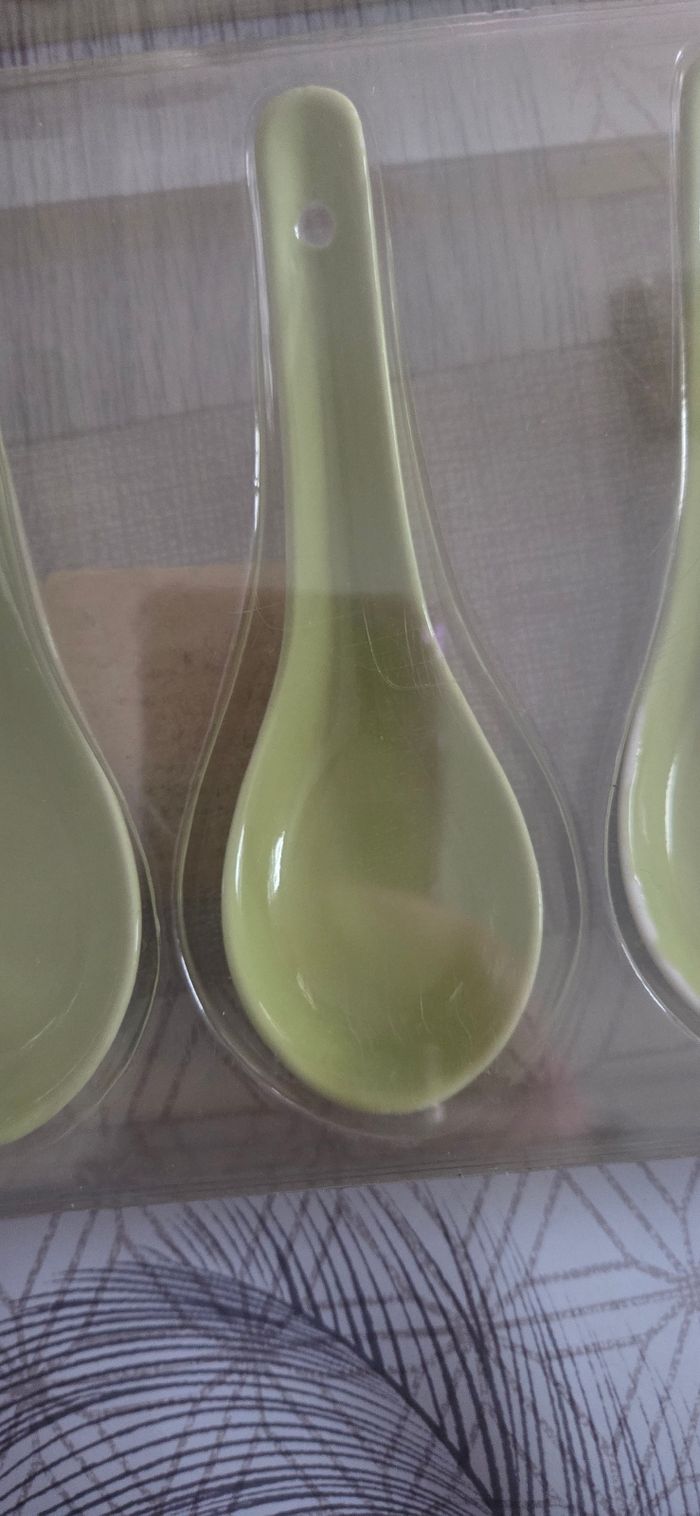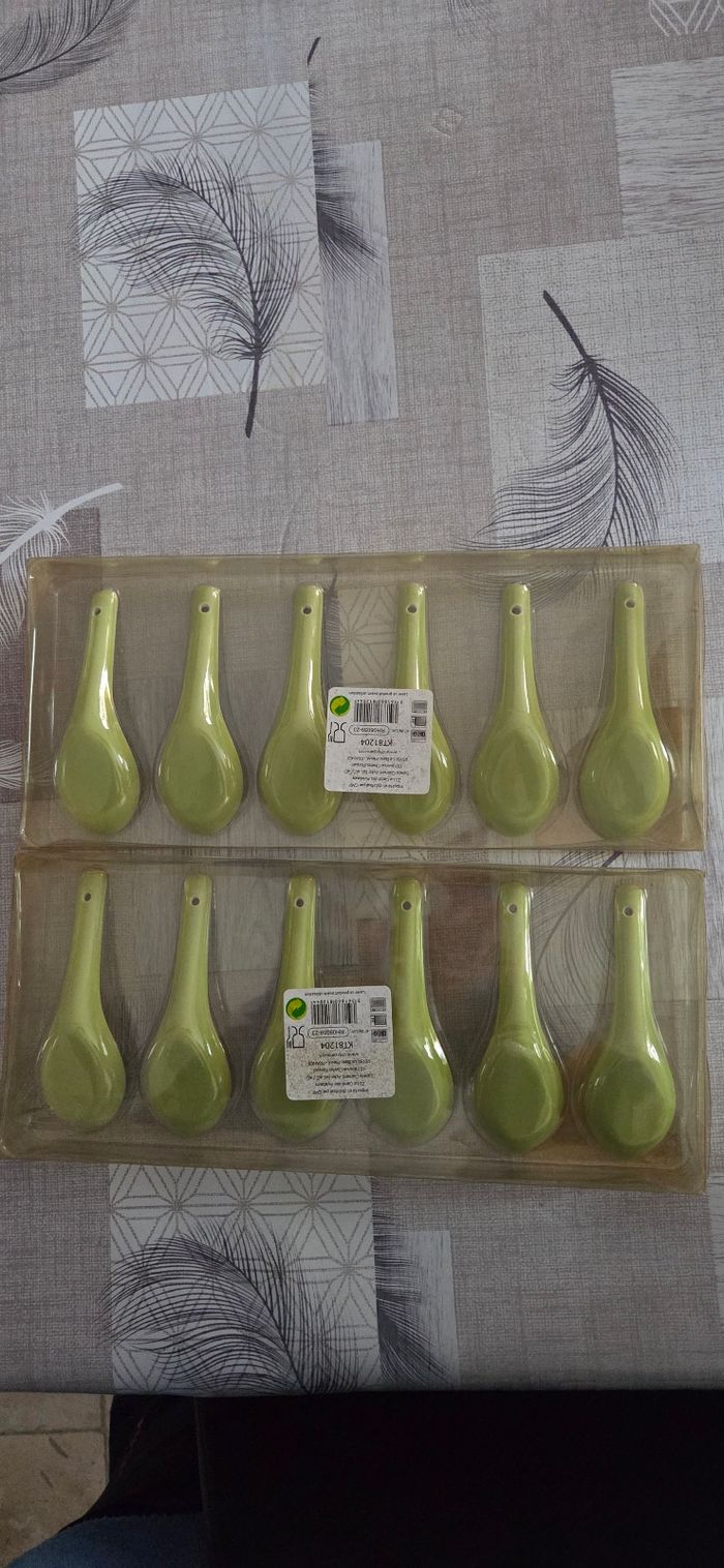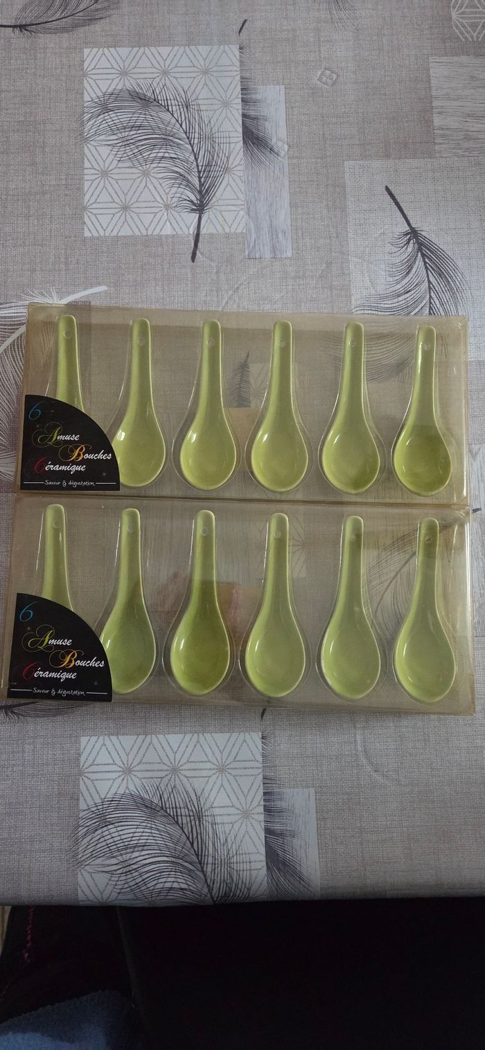 Lot de 12 cuillères amuse bouche céramique de couleur verte Idéal pour faire une belle présentation lors d'un repas. Jamais utilisé