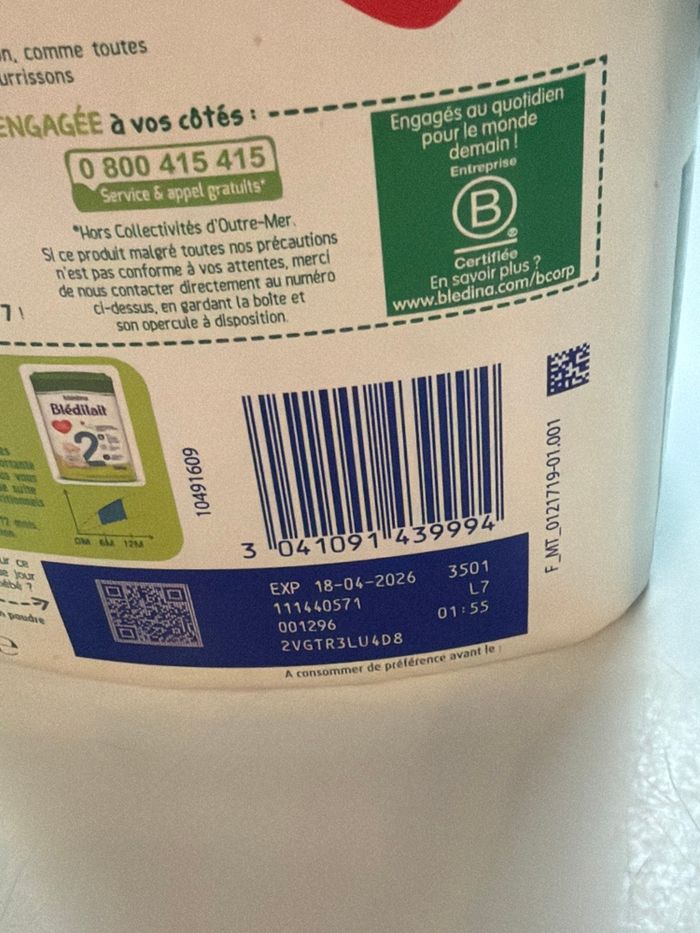 Lait Blédilait 1 ère âge  - photo numéro 3