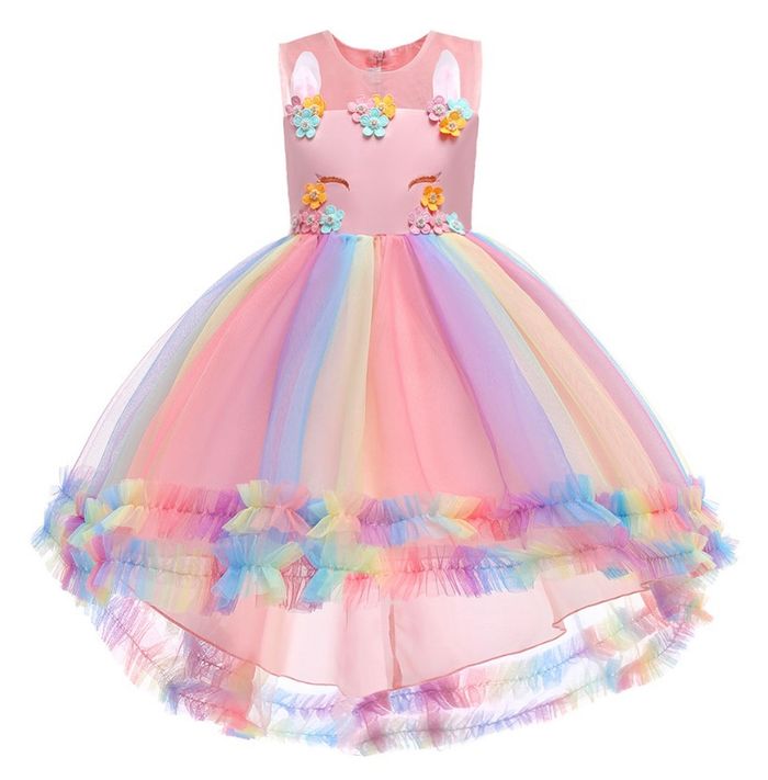 Déguisement robe de princesse licorne et ces accessoires (aile et serre tête). 1 taille disponible : - 5-6ans : longueur de la robe 60cm devant et 80cm derrière, Vendu dans leur pochette d’emballage d’origine, idéal pour faire un cadeau ! Expédition rapide après votre commande