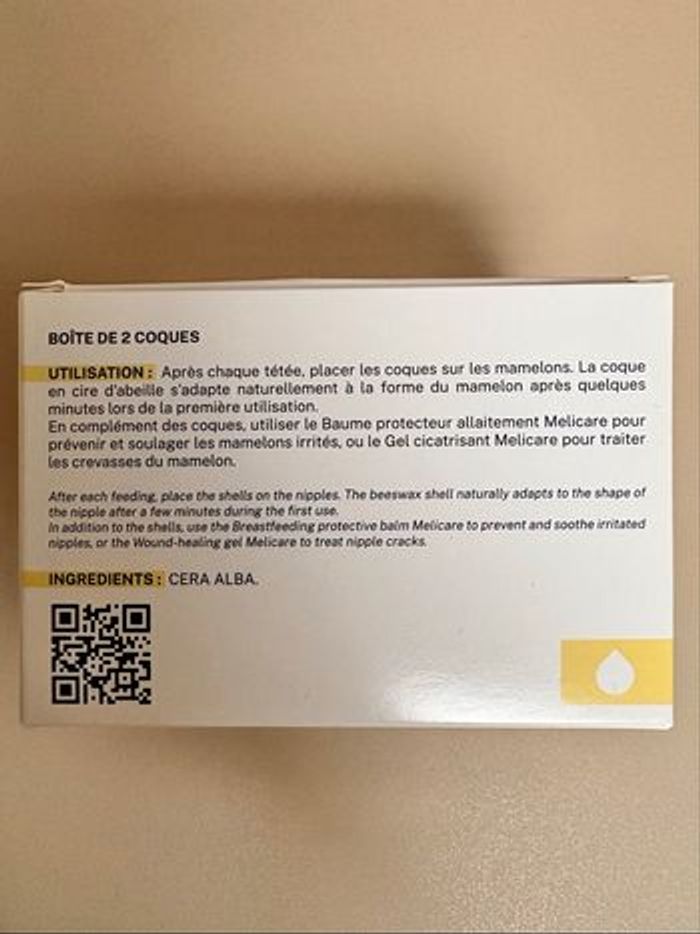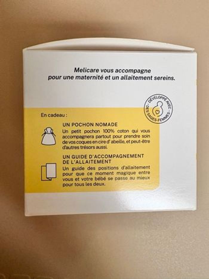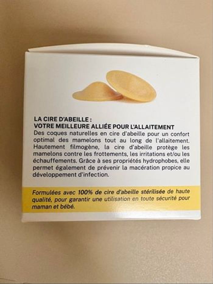 Coques 100% en cire d'abeille stériles pour protéger des gerçures et assouplir les mamelons pendant l’allaitement Acheté 27,80€ ttc sur le site melicare Neuf