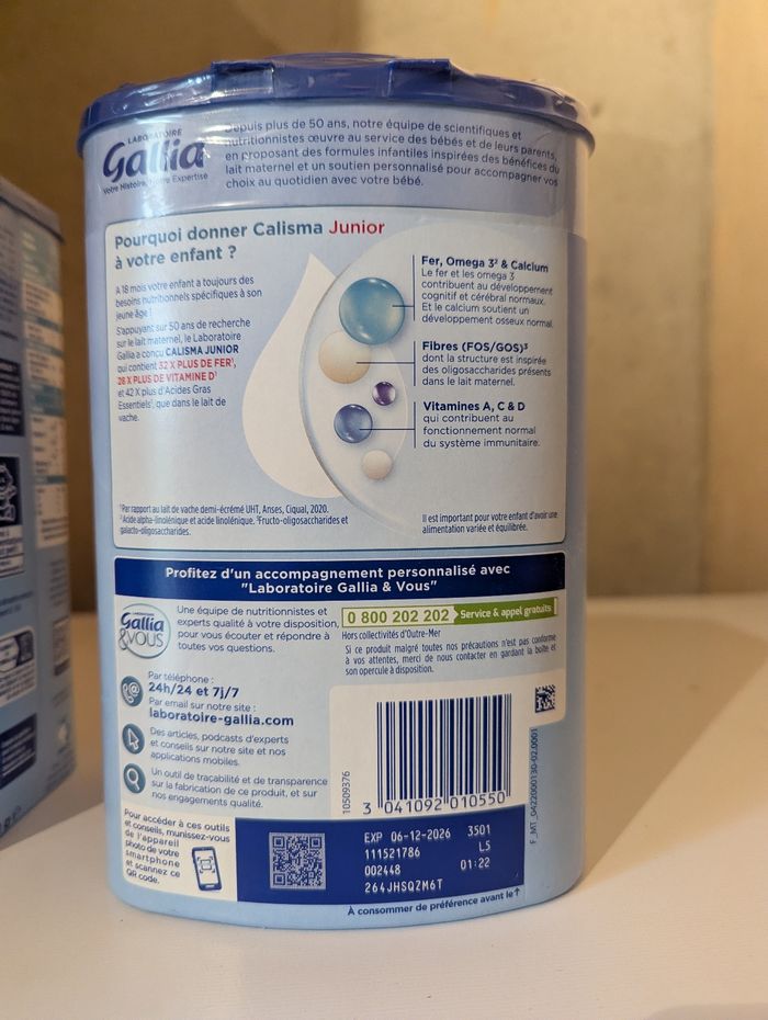 Boîte de lait neuve Gallia Calisma junior, lait de croissance  - photo numéro 2