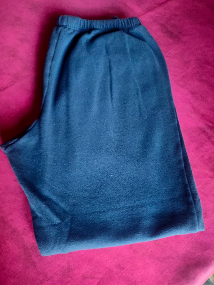 Vends pantalon de jogging bleu taille XL, 80% polyester , 20% coton, longueur totale 1m04, longueur entrejambe 72 cm