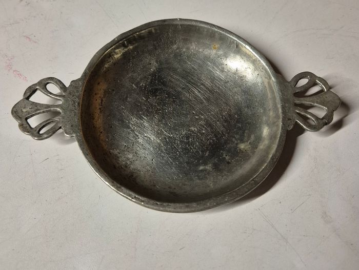 Bol ecuelle à oreille en etain fin ancien coupelle - photo numéro 1