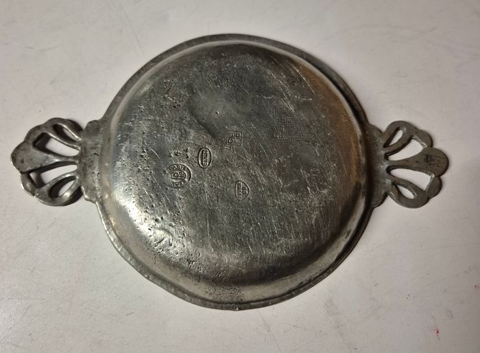 Bol ecuelle à oreille en etain fin Diametre sans oreille 12cm Largeur total 18.5cm Etat conforme aux photos #ecuelleetain #decorationancienne #ancien #videpoche #videpocheetain #etainfrance