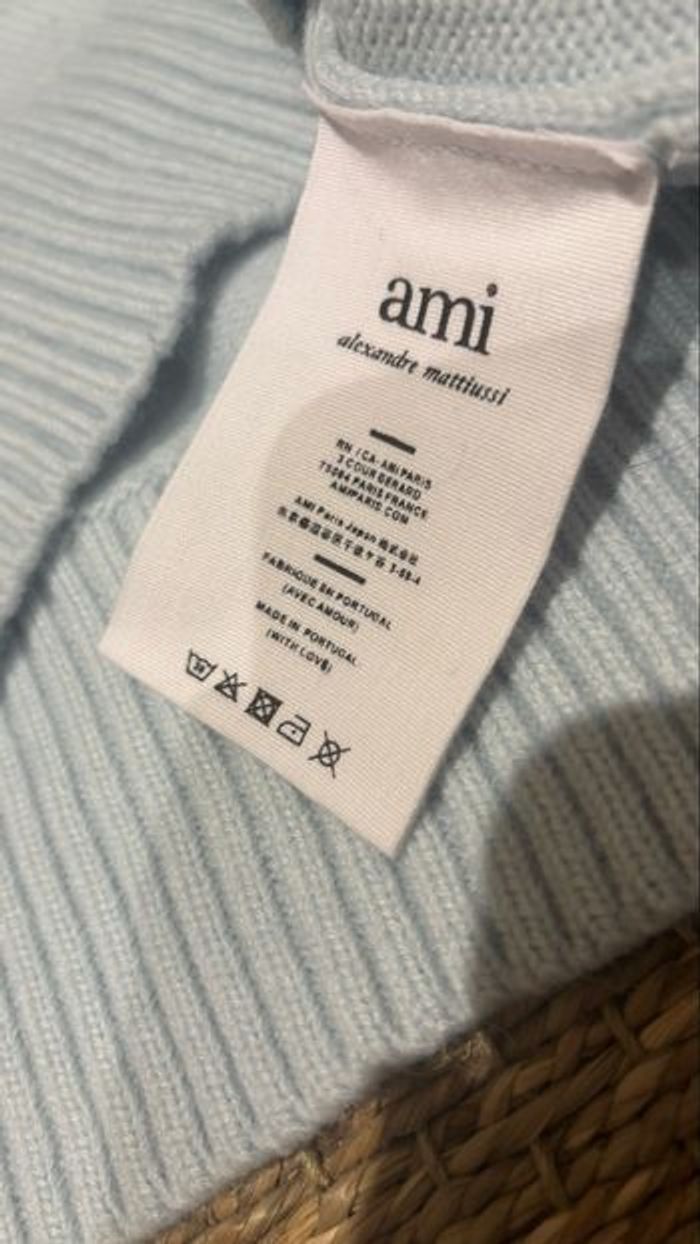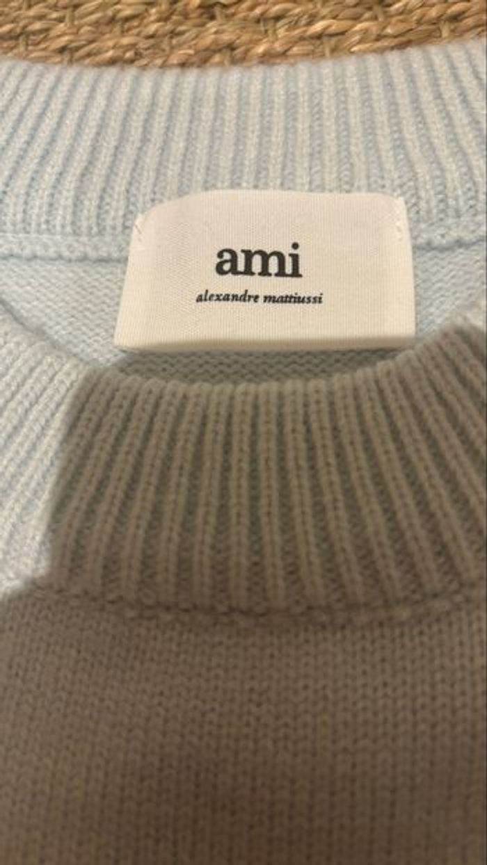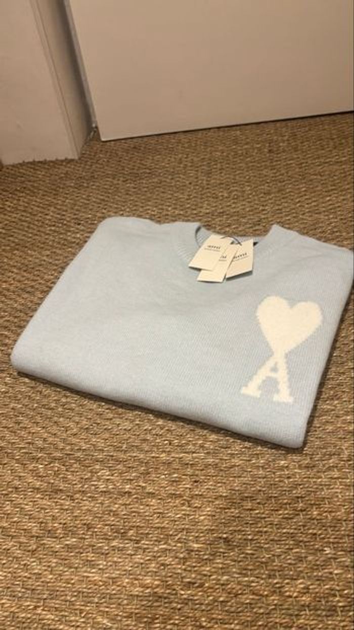 Pull Ami paris • Pull en maille alpaga à col rond En couleur bleu ciel logo blanc En taille L Neuf avec étiquette et emballage d'origine N'hésitez pas pour plus d'infos !!