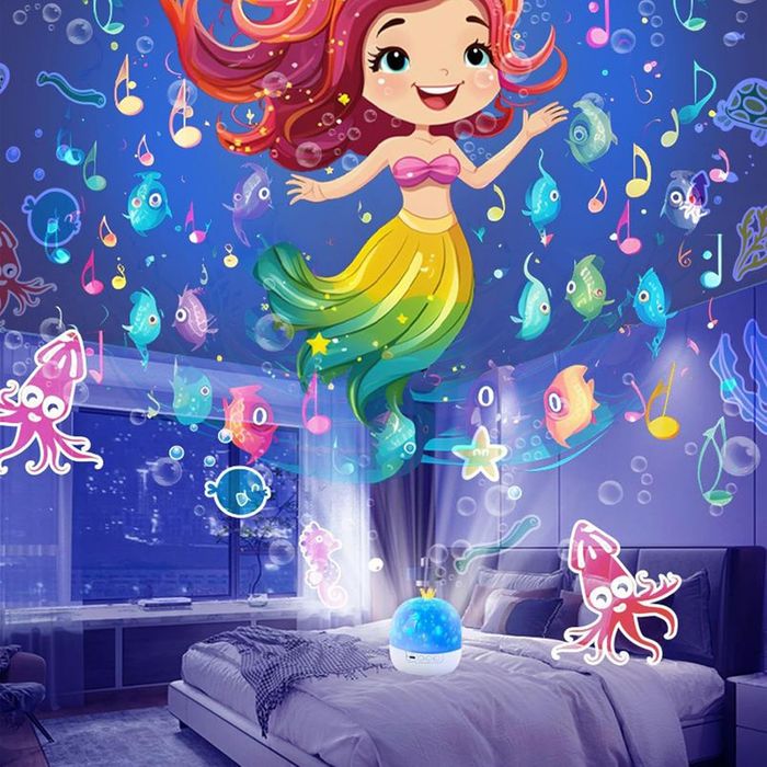 Vendu avec une dizaine de filtres différents interchangeables sur différents thèmes. Ce projecteur/lampe est vraiment charmant. Lorsqu’il est allumé, il projette des figures colorées pleines de vie marine sur les murs et le plafond, créant une atmosphère magique et relaxante, parfaite pour les enfants et les adultes à la recherche d’une touche de fantaisie dans leur chambre. Les détails des dessins sont très beaux et l’effet de lumière donne une sensation de confort. De plus, il est facile à utiliser : il suffit de le brancher et le tour est joué. Le couvercle en forme de couronne dorée lui donne un design élégant et amusant lorsqu’il n’est pas utilisé, ce qui en fait également un bel ornement. C’est un article idéal pour offrir, car il combine esthétique, fonctionnalité et une touche de gentillesse. En résumé, c’est un produit qui dépasse les attentes : il illumine, décore et crée une atmosphère relaxante en même temps. - Projection d'étoiles calmante : La fonction de projection à 360 degrés de ce projecteur nuit étoilée pour diffuse des motifs d'étoiles apaisants. Elle génère une atmosphère de chambre douillette et réconfortante qui aide les à se relaxer et à s'abandonner progressivement dans un sommeil profond et paisible pendant la routine du coucher. - Ambiance Visuelle Sereine : Le projecteur d'étoiles pour chambre minimise l'émission de lumière bleue afin de procurer un éclairage délicat adapté aux nurseries. Sans danger pour une utilisation toute la nuit, il préserve la vue des tout en créant un environnement visuel paisible et agréable. - Environnement calme pour dormir : Grâce à sa capacité à apaiser les émotions, cette veilleuse projecteur pour assure une transition en douceur le sommeil. Elle crée un cadre sécurisant chaque nuit pour une routine de coucher sereine. - La lumière douce et apaisante des étoiles transforme l espace en un havre de paix, idéal pour des moments de détente.
