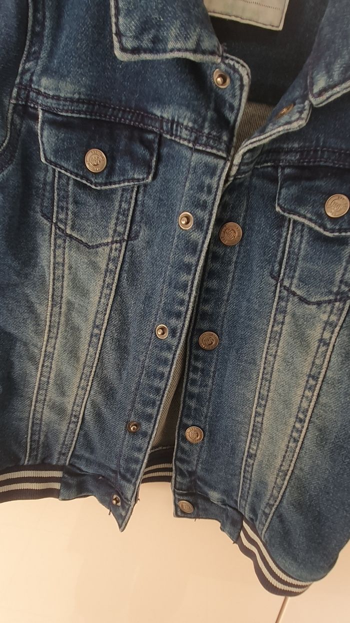 Veste en jean Orchestra Taille 36 mois Effet délavé sur le devant Fermeture par pressions Non doublé chaud 2 petites poches avant ⚠️ le prénom de mon fils est inscrit sur l étiquette intérieure (école oblige) Très bon état