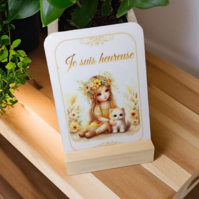 Plongez dans un univers magique avec ce lot de 30 cartes d'affirmations sur le thème des chats, spécialement conçu pour les filles. Chaque carte, magnifiquement illustrée et écrite au féminin, est une source quotidienne d'inspiration et de positivité. Ce lot comprend : - 30 cartes d'affirmations laminées pour une durabilité maximale, garantissant qu'elles restent impeccables, même après des manipulations répétées. - Un support en bois élégant, parfait pour afficher la carte du jour et garder l'affirmation positive à l'esprit tout au long de la journée. "Chaque matin, choisis une carte au hasard, place-la sur le support en bois et laisse-toi imprégner par la force des affirmations positives". Ce lot est plus qu'un simple jeu, c'est un outil puissant pour cultiver la confiance en soi, l'optimisme et la joie. CouleursUnivers Sumup