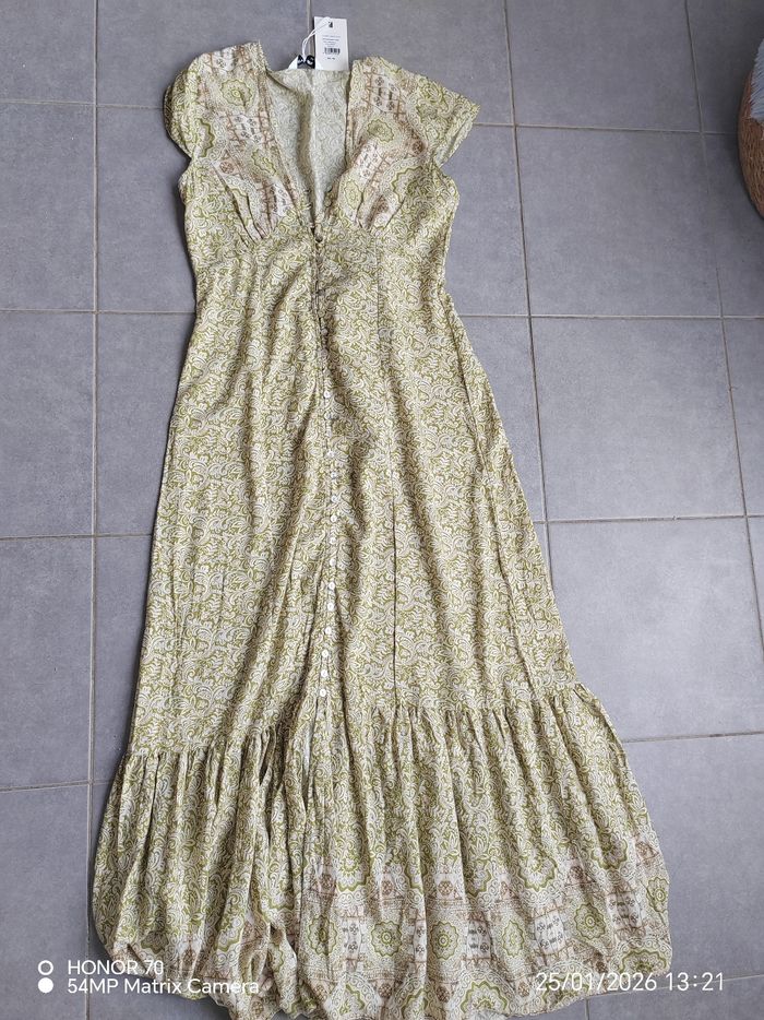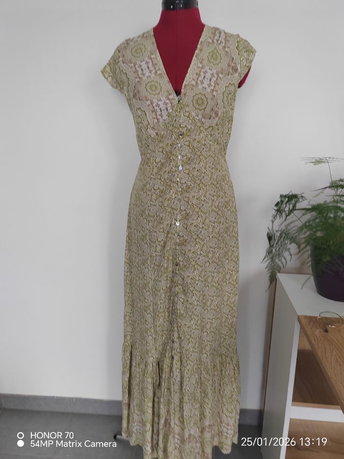 Neuve En viscose Longueur totale 150 cm Boutonnee sur le devant Se ressere dans le dos Largeur à plat sous les aisselles 48 cm Matiere fluide ey légère TailleS/36 #geliscyrilletaille36 #geliscyrilletailleS Ref3/CA4