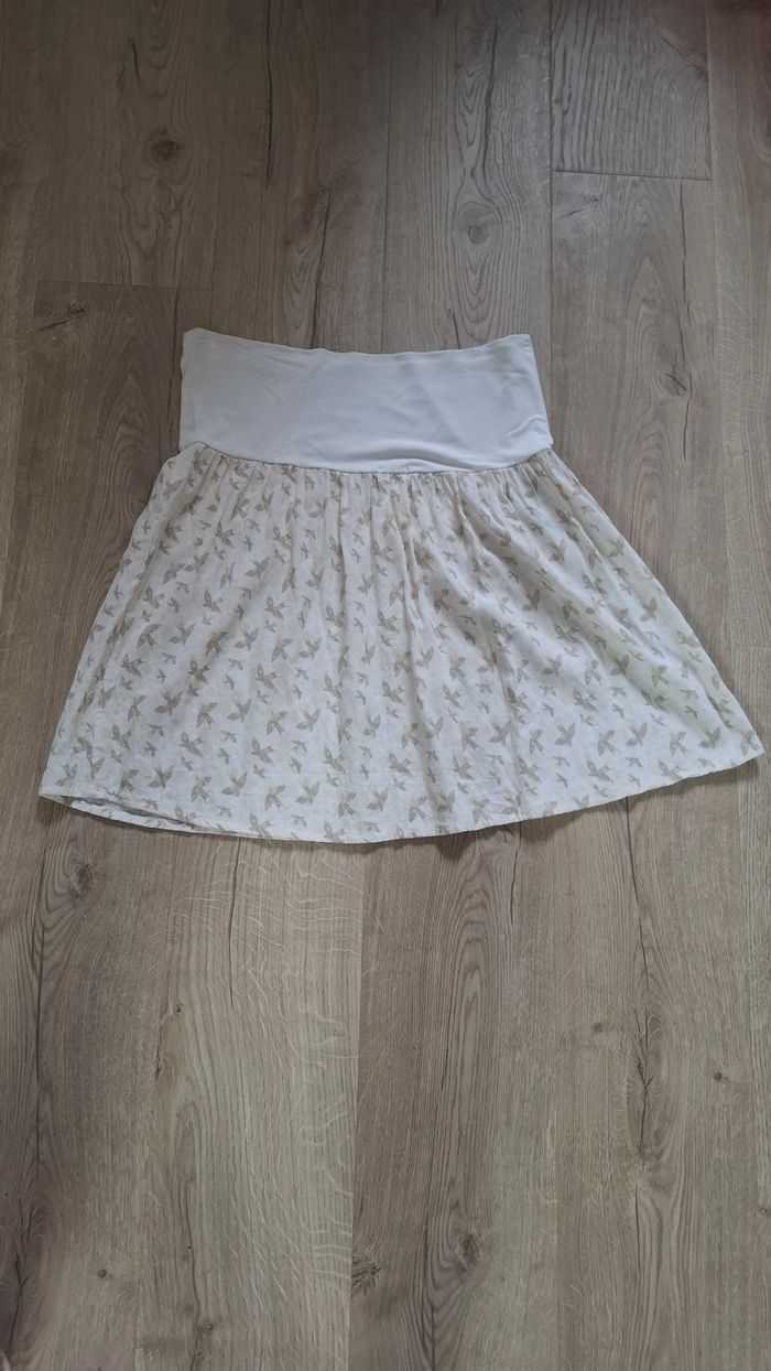 Jupe de grossesse beige, imprimé oiseaux. Ceinture bandeau élastique. Coline de Vert Baudet Neuve jamais portée. #loluxiafemmematernité #loluxiafemme42