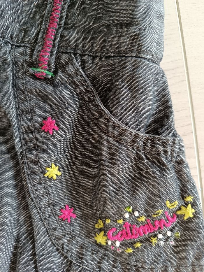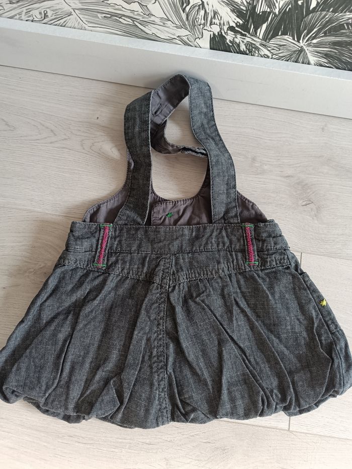 Robe salopette en jean noir avec broderie entièrement doublée idéale avec un sous pull et des collants, très peu porté taille 12 mois 100% coton