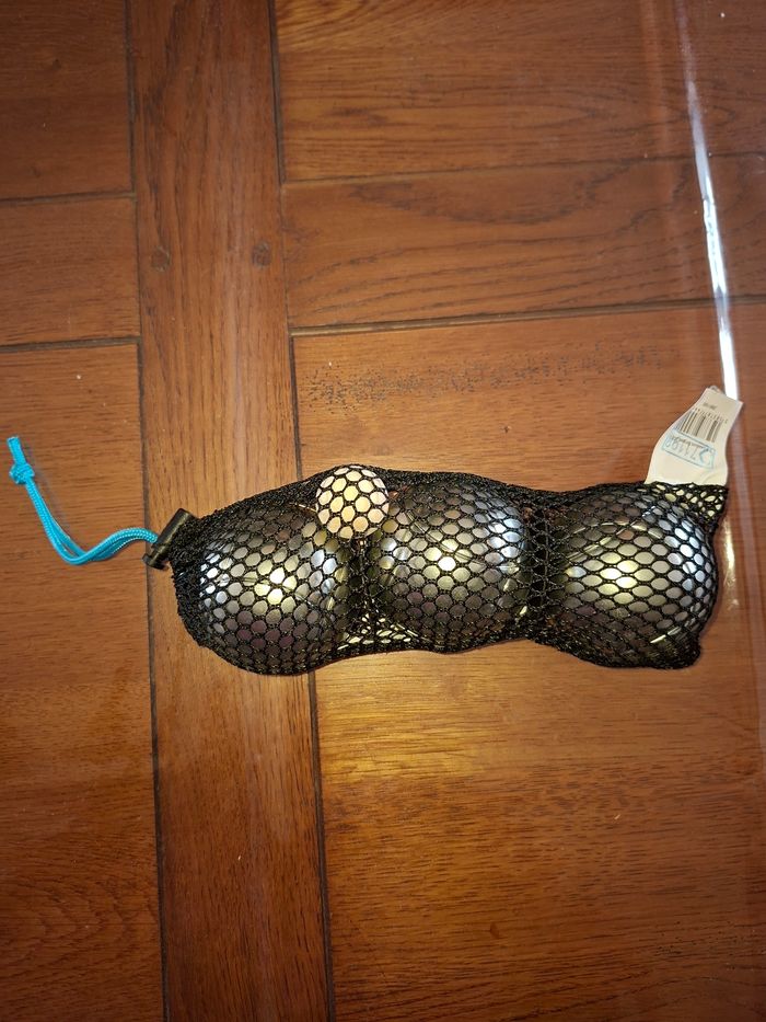 Vends un ensemble complet de pétanque de la marque Decathlon, neuf et n'ayant jamais servi. Idéal pour offrir ou pour vos loisirs. ​Contenu du lot : 3 boules de pétanque en métal lisses avec stries, un cochonnet en bois et un filet de transport. ​État : Neuf, jamais utilisé. Les boules sont impeccables, sans aucune trace d'impact. ​Poids : Précisément 578g par boule (pesée vérifiée sur balance de cuisine). ​Praticité : Vendu avec son filet de rangement noir à cordon bleu pour un transport facile.