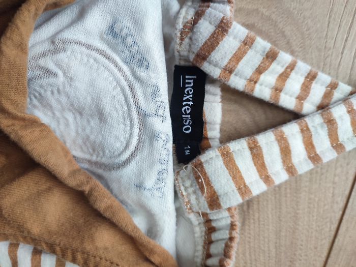 Ensemble bébé salopette body renard rayé beige