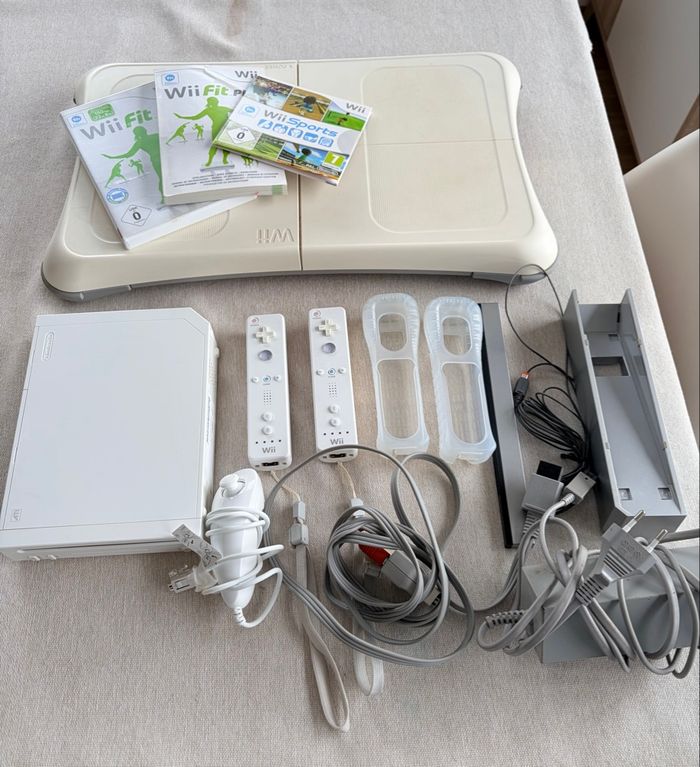 En très bon état Wii, 2  manettes, câbles, balance board …