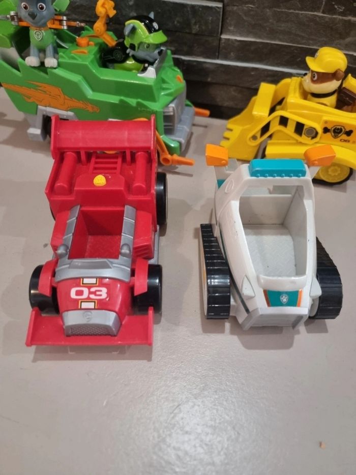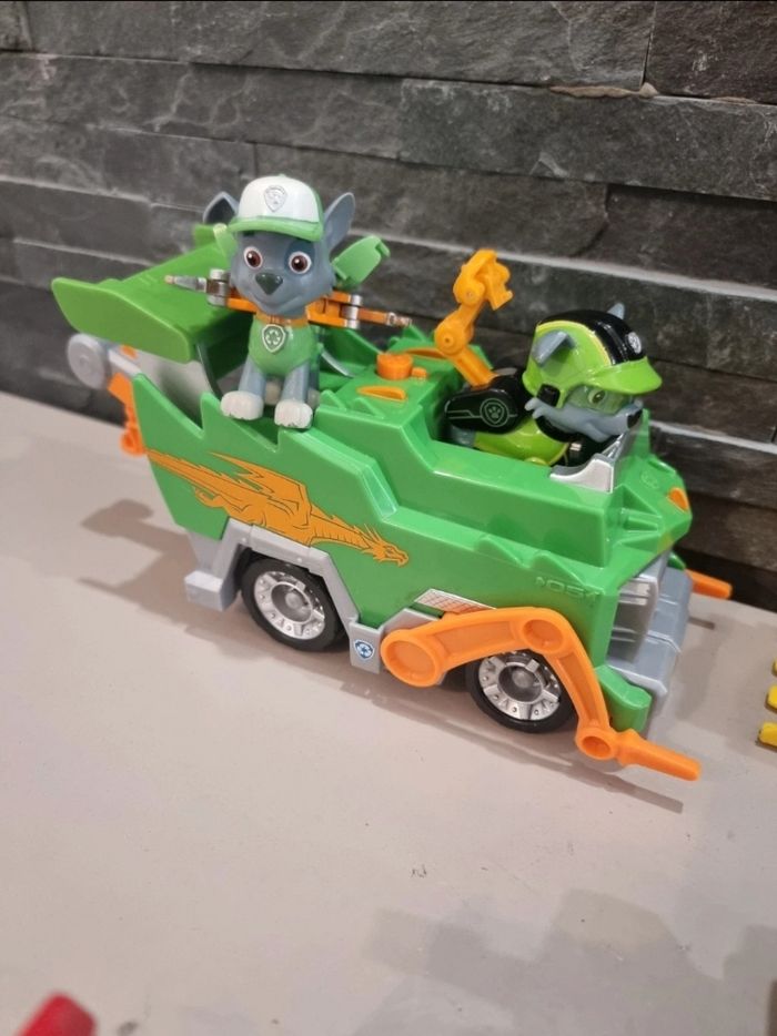 Lot pat patrouille Grand véhicule de rocky avec 2 rocky dont 1 avec accessoires qui sortent Ruben Véhicules seuls de everest et markus, la voiture de course fait du bruit. Très bon état ⚠️ ne bénéficie pas des remises de lots #dodi68_jouet