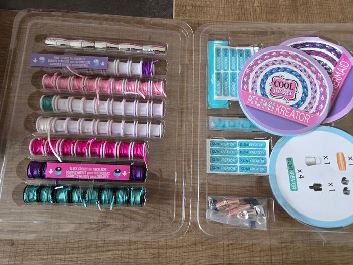 coffret KumiKreator de chez CoolMaker machine qui permet de créer des bracelets et des colliers comprend la machine et 2 boites de recharges de fils en très bon état