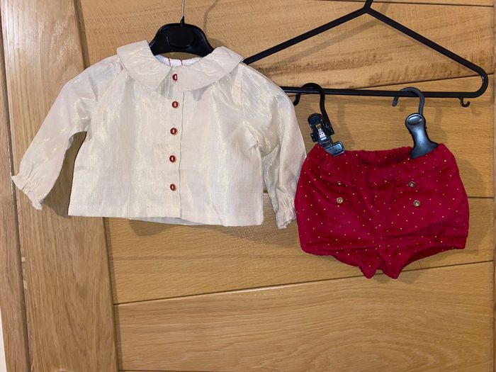 Ensemble bébé fille Sergent Major - 6 mois - Neuf avec étiquette Très bel ensemble Sergent Major, neuf avec étiquette • ¡ chemise pailletée dorée, short velours rouge bordeaux Taille 6 mois, parfait pour la saison hiver / printemps Ensemble confortable et stylé, facile à porter au quotidien → D'autres articles disponibles dans la même
