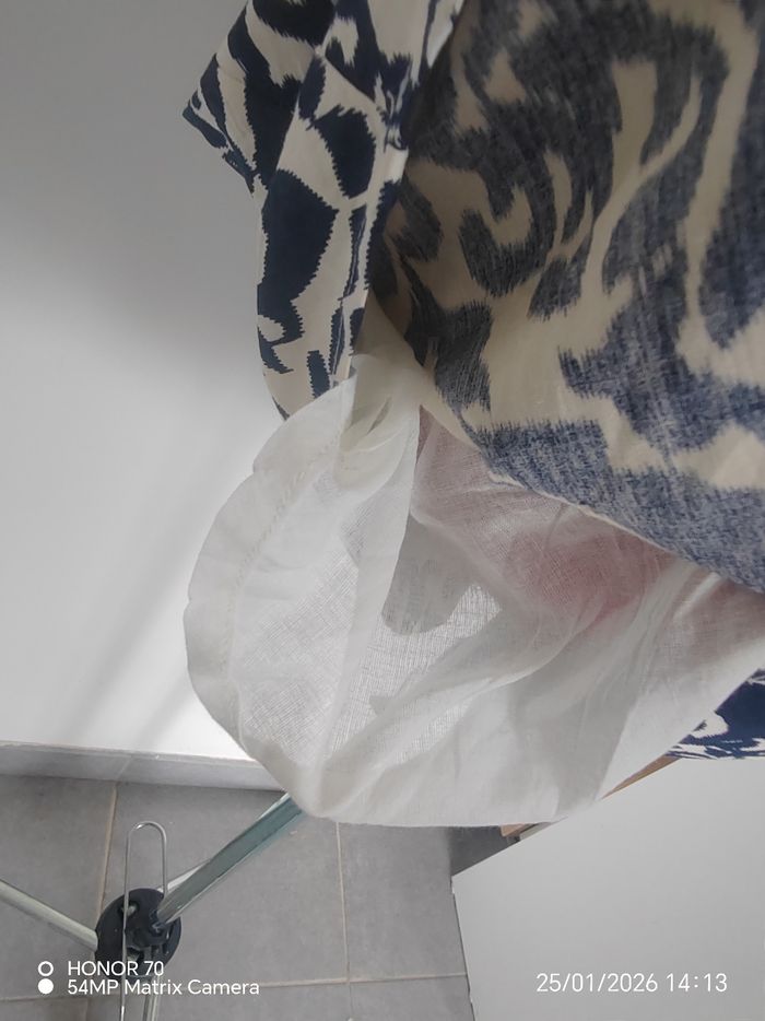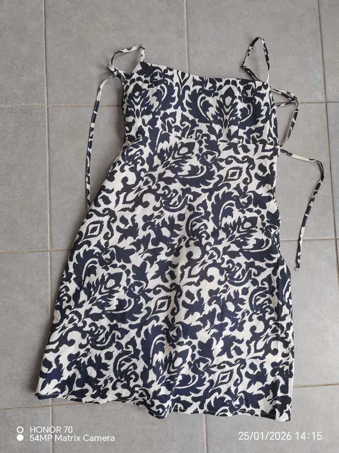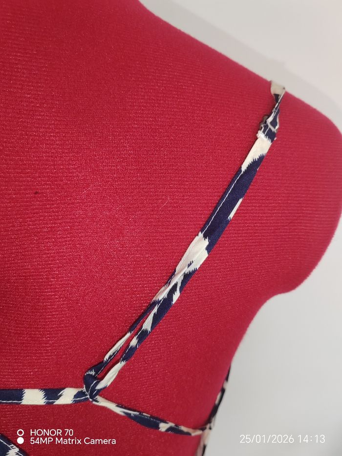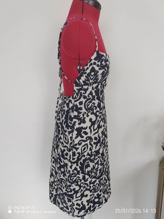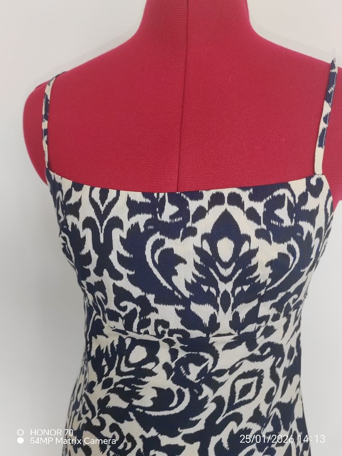 Bretelles reglables Se noue dans le dos Fermeture eclair dans le dos Doublee. 100 %coton Longueur totale haut du buste bas de la robe 77 cm Largeur taille à plat 38 cm #geliscyrilletaille38 #geliscyrilletailleM RefCA3/4