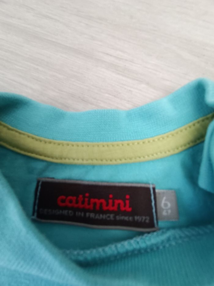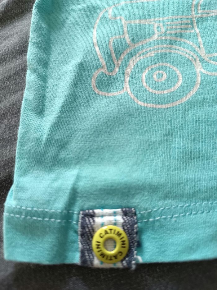 Tee shirt manches longues imprimé sur fond turquoise Catimini taille 6 mois, bon état général