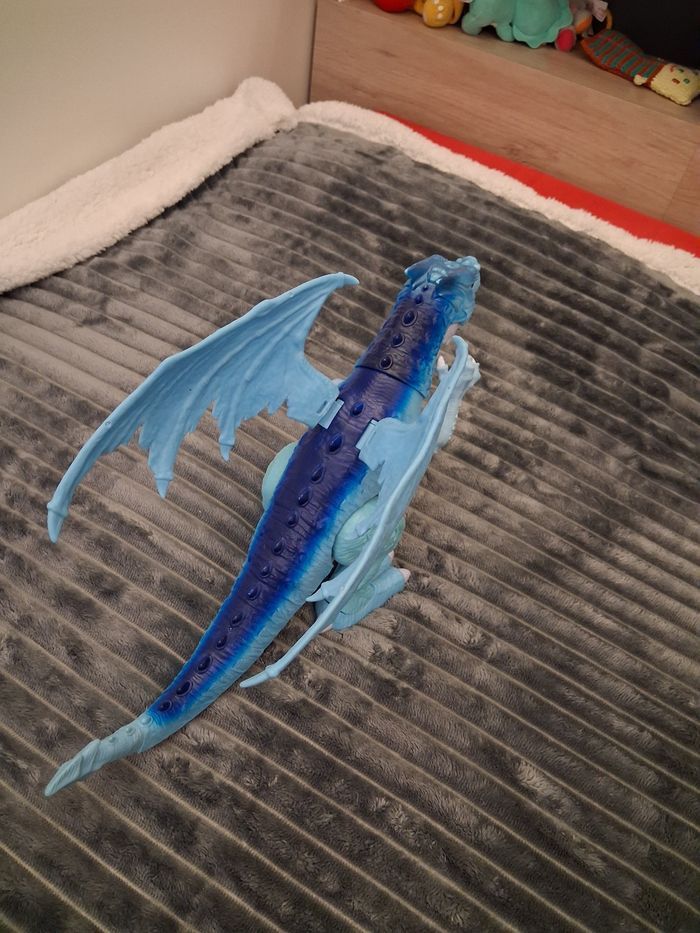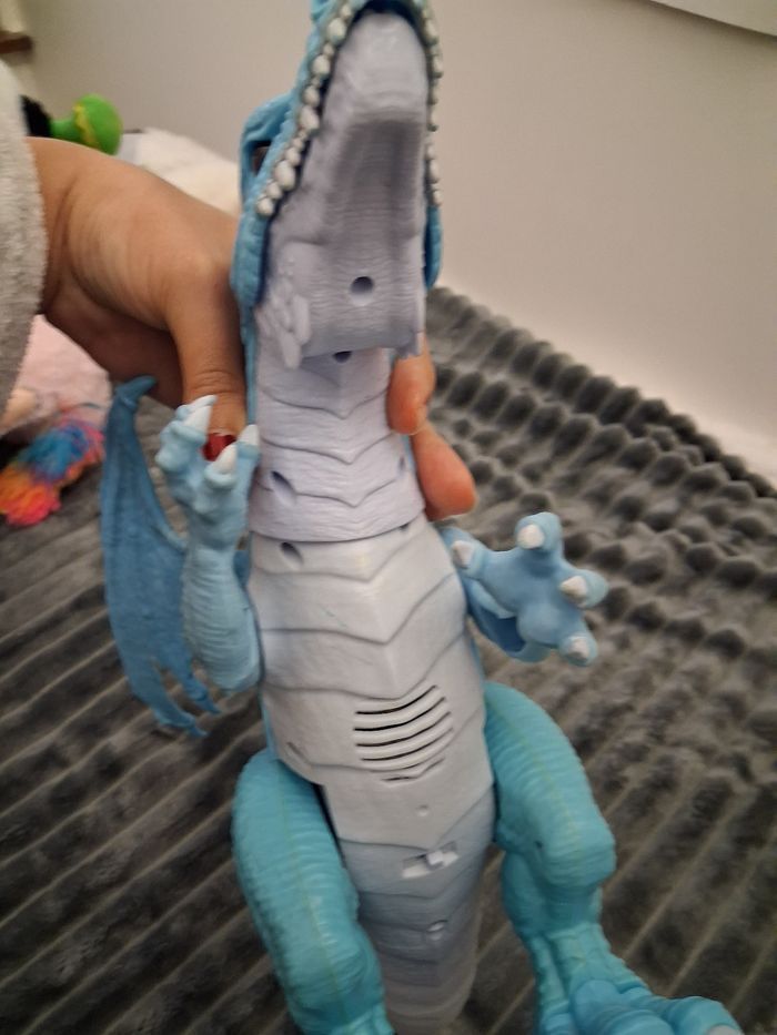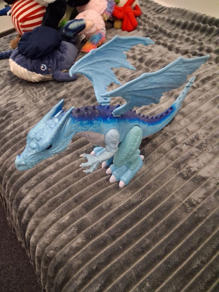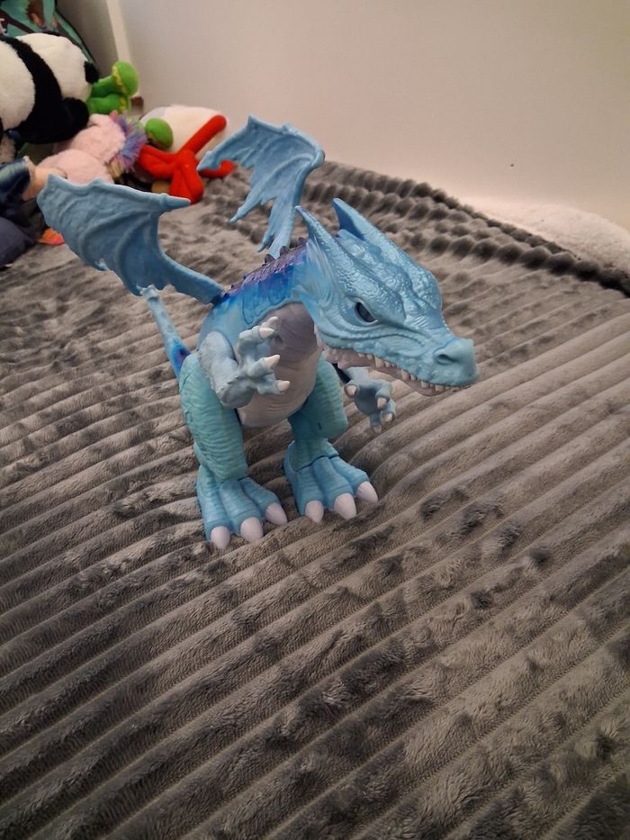 Grand "Dragon de glace" électronique, sonore et lumineux, fonctionne avec des pilles (non incluses) ⚠️ Merci de bien regarder les 2 dernières photos, une partie peut être amener à s'enlever au niveau de la jonction visible sur les photos, je précise qu'elle se remet facilement et n'est pas dangereuse (ni blessante, coupante ou quoi que ce soit d'autre), juste esthétique, et s'enlève uniquement en cas de choc N'hésitez pas à me contacter si vous avez des questions 😀