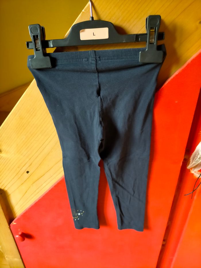 TBE Très joli legging en jersey de coton marine avec motif fantaisie au bas d'une manche