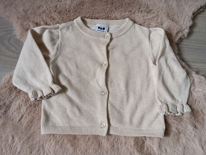 Gilet beige avec fil doré, taille 6 mois, 68 cm, marque Tape à l'oeil.
