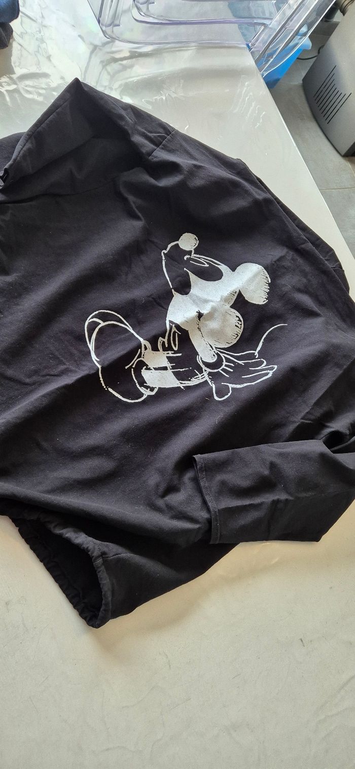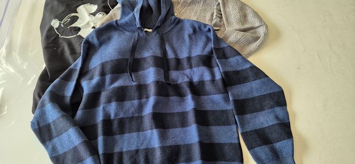 Lot de pulls et gilet femme taille L Gilet gris gemo taille L neuf Pull à rayures bleu gemo taille L neuf Pull chemise gris gemo taille L Veste à capuche noir dessin mickey au dos taille unique porté loose.