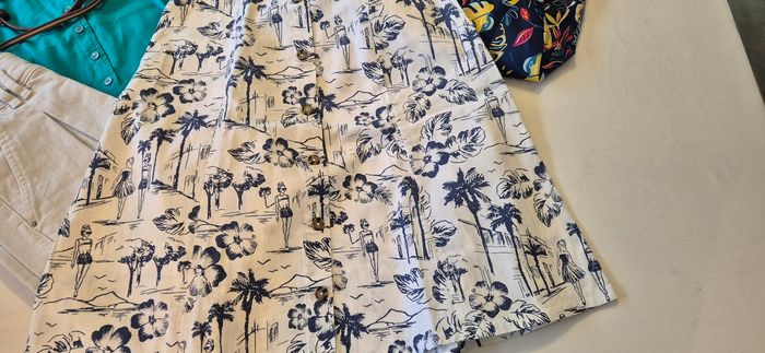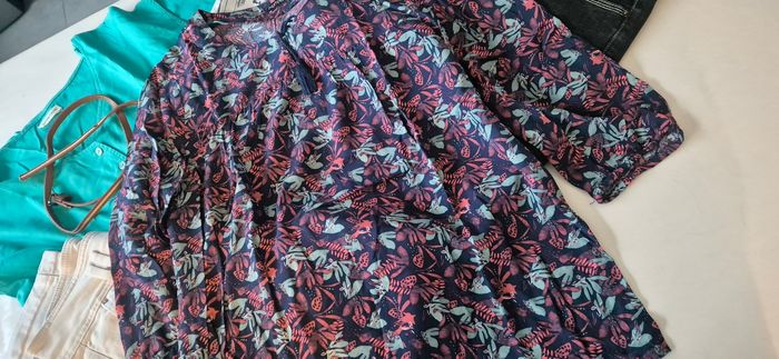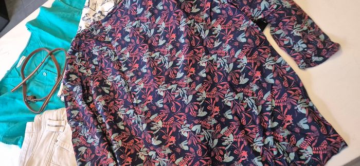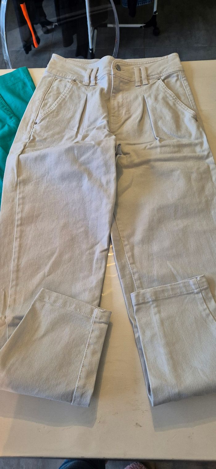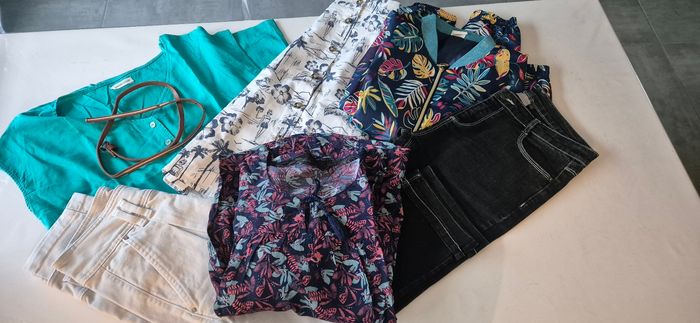 Robe vert émeraude cache cache taille 38 Pantalon gris c&A tapered gris clair taille 38 Veste feuillage blanche porte 38/40 Jupe c&a etiquette coupée mais taille 38 Pantacourt noir kiabi 38 Blouse manches longues in extenso 38.