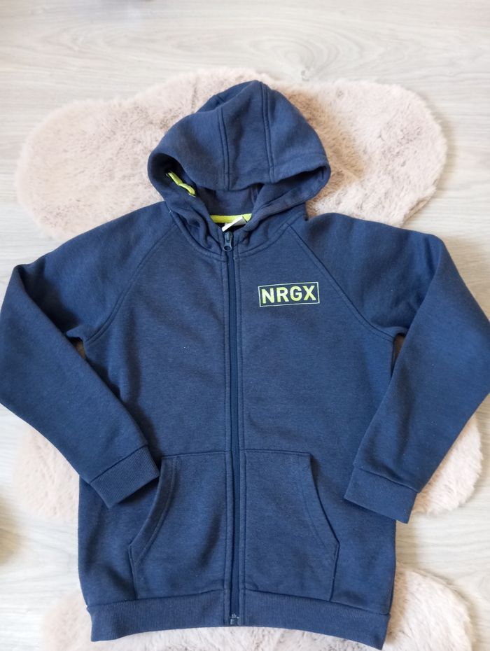 Gilet zippé à capuche, taille 10 ans, 140 cm, marque Energetics. Il a quelques légères bouloches mais reste en parfait état.