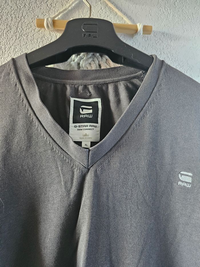 Joli pull gris, col en V, taille XL, marque G-star. Très bon état.