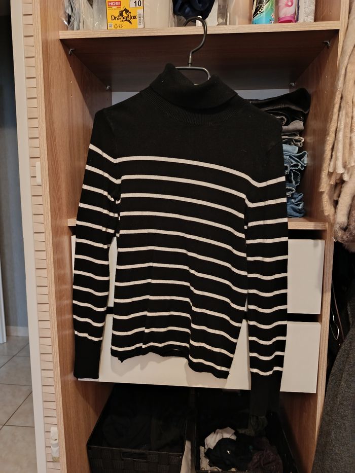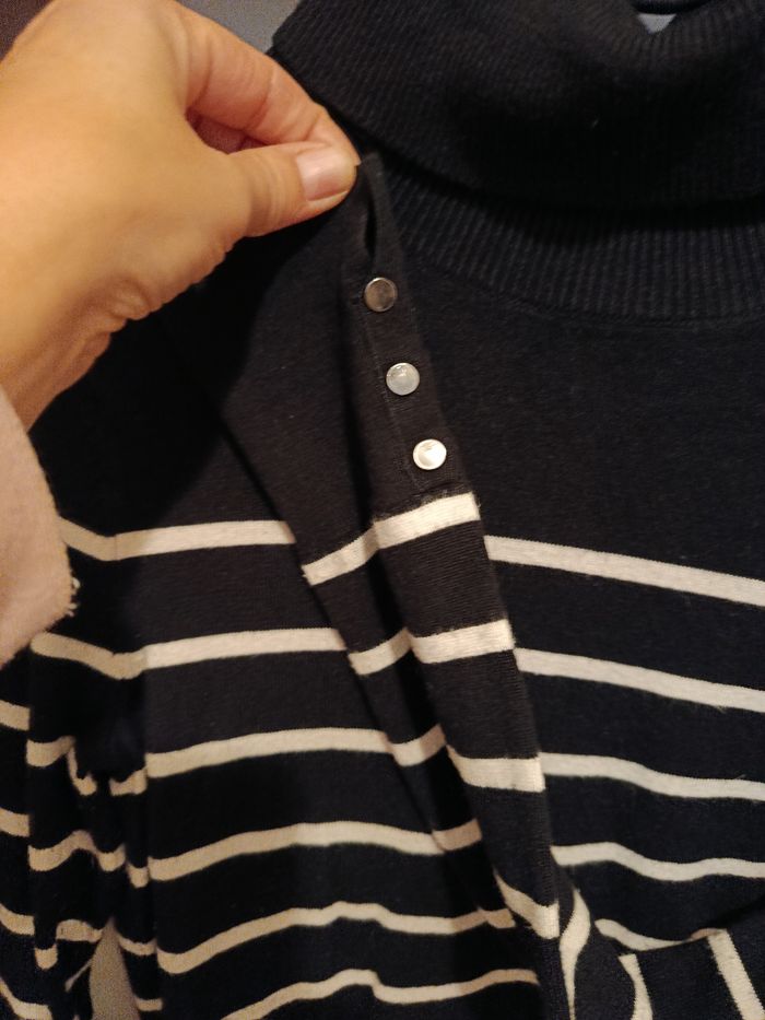 Pull col roulé Marine manches longues avec boutons au des manches.