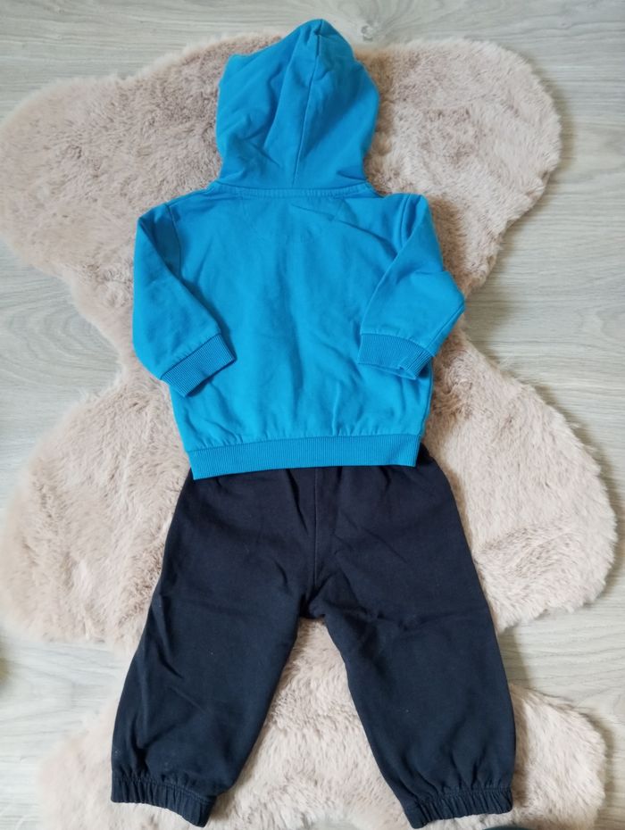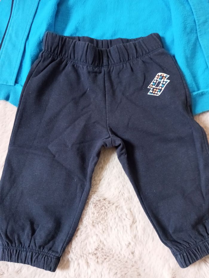 Jogging bébé, marque Lotto, taille 6 mois comprenant un pantalon de jogging et un gilet zippé à capuche. Le pantalon a quelques légères bouloches mais reste en très bon état.
