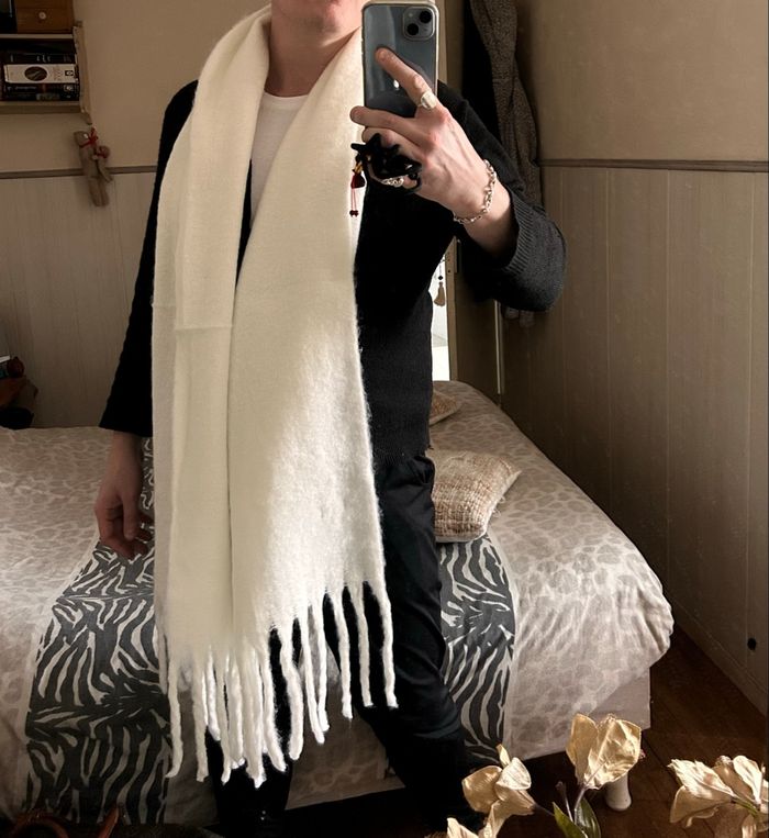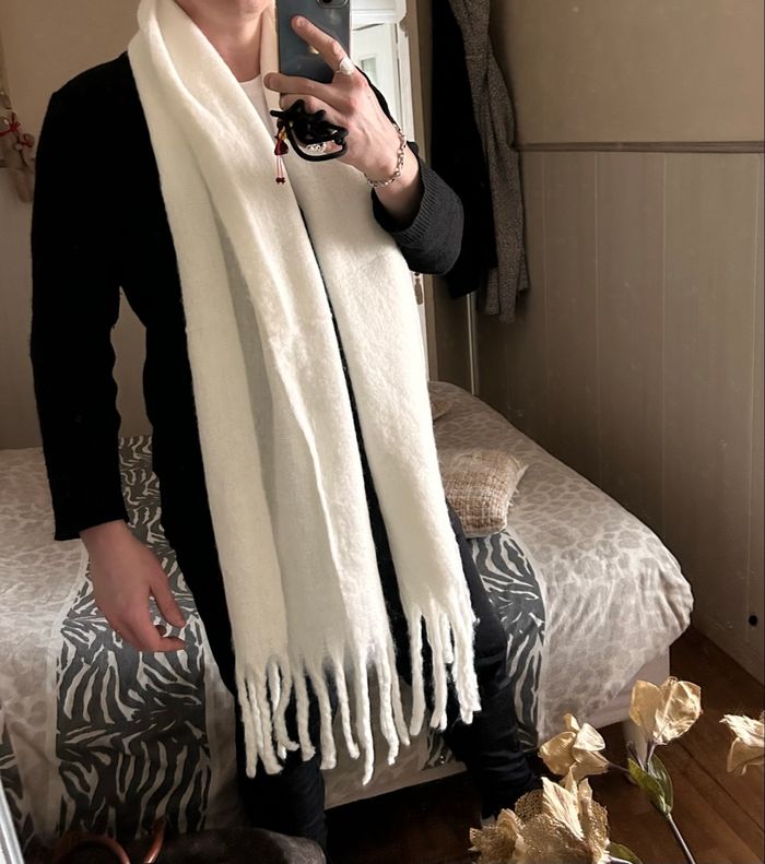 ✨ ÉCHARPE XL GIGI PIP – NEUVE & ULTRA COSY ✨ Craquez pour cette magnifique écharpe de la marque Gigi Pip, l'accessoire indispensable pour affronter le froid avec élégance. Son coloris beige chiné/crème est un basique chic qui s'accorde avec absolument tout ! Les points forts : • Format XXL : Environ 2 mètres de long ! Elle est parfaite pour s'emmitoufler dedans, faire plusieurs tours ou la porter avec style façon "oversized". • État : Neuve, jamais portée. Un cadeau idéal (ou pour se faire plaisir !). • Marque de Prestige : Gigi Pip est célèbre pour ses accessoires de qualité au design épuré et moderne. • Douceur & Confort : Une texture moelleuse et chaude, idéale pour les journées d'hiver ou les soirées fraîches. Caractéristiques : • Couleur : Beige crème / Avoine (très lumineux). • Dimensions : ~200 cm (Longueur) x largeur généreuse (voir photos). • Style : Minimaliste, bohème-chic. Le conseil mode : Parfaite pour rehausser un long manteau noir ou pour compléter un look monochrome crème. C'est la pièce "confort" par excellence ! 📦 Envoi ultra rapide (sous 24h/48h). 🧼 Maison non-fumeur.