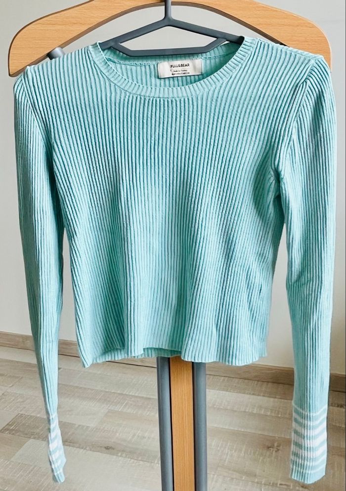 Pull côtelé Pull&Bear vert d’eau - Taille S/36 - Très bon état - photo numéro 1